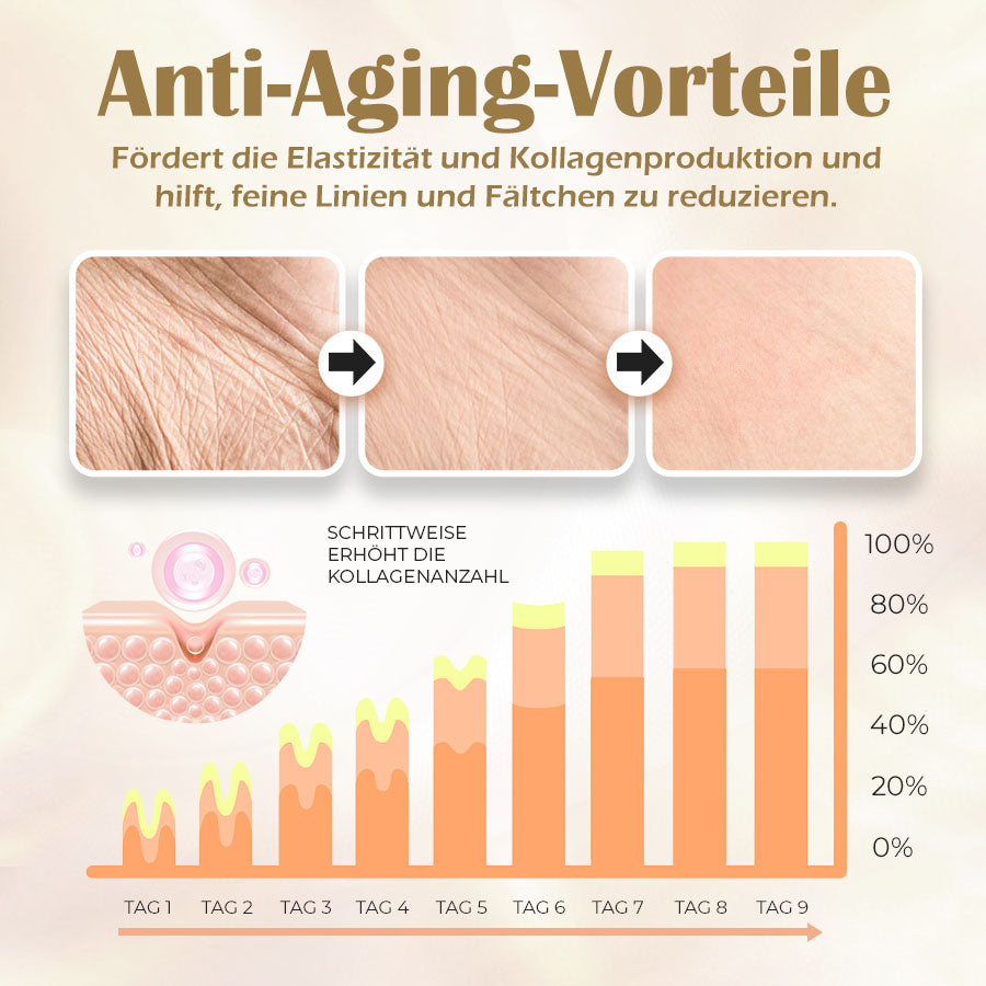 - Anti-Aging-Vorteile fördern die Hautelastizität und die Kollagenproduktion, was hilft, feine Linien und Falten zu reduzieren.